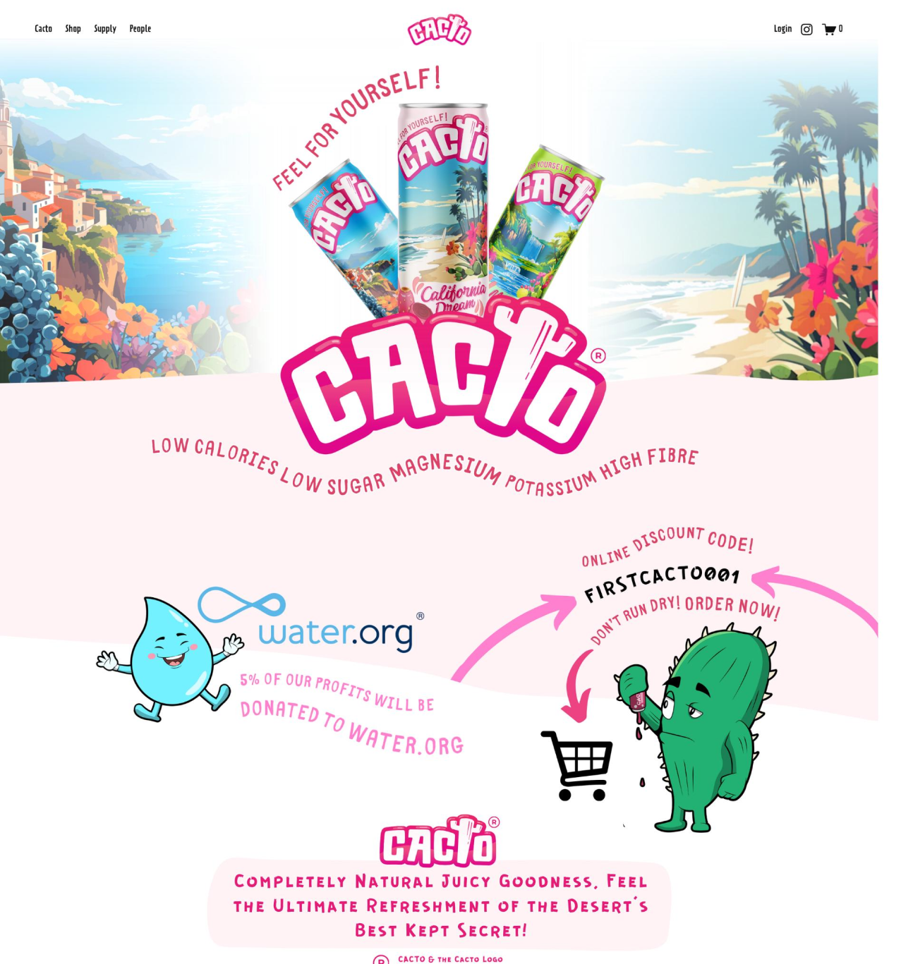 One of our proudest web design projects, we completely overhauled Cacto Drinks’ website to create a visually appealing and user-friendly online platform. Through intuitive navigation, captivating visuals, and compelling storytelling, we aimed to immerse visitors in the world of Cacto and showcase the health benefits of Prickly Pear in a clear and engaging manner. The redesigned website not only served as a digital storefront for Cacto’s products but also as a platform to educate consumers about the nutritional properties and sustainability aspects of Prickly Pear.